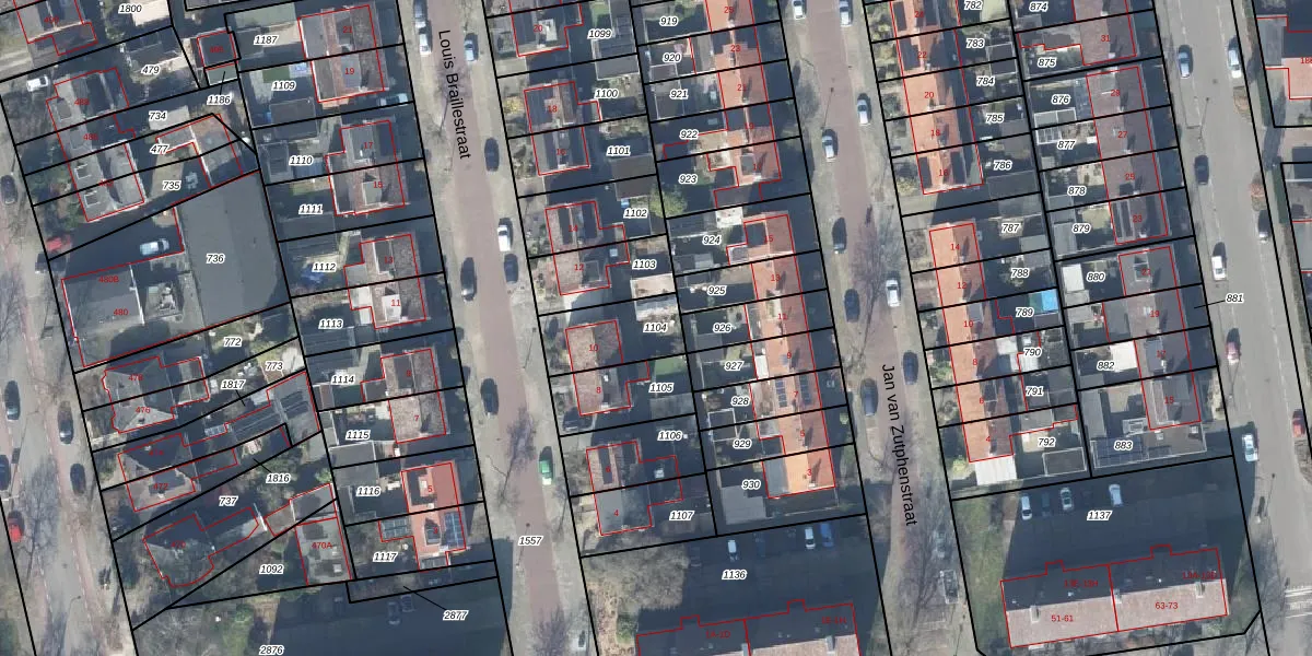 Gebruik de zoekbalk of klik op een perceel om informatie over het perceel te bekijken.