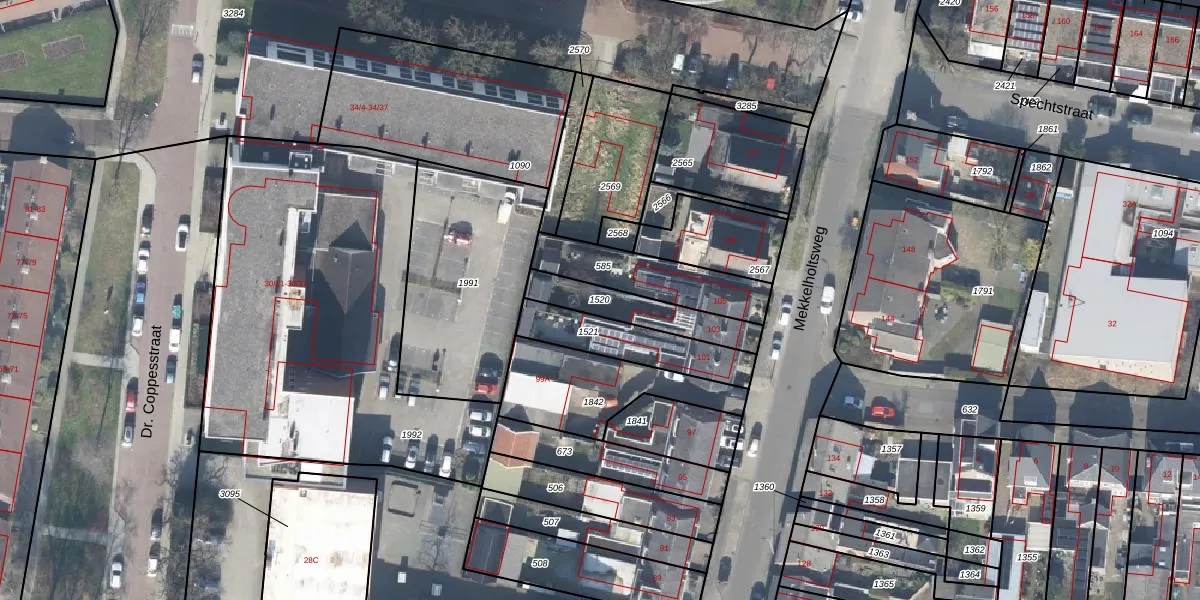 Gebruik de zoekbalk of klik op een perceel om informatie over het perceel te bekijken.