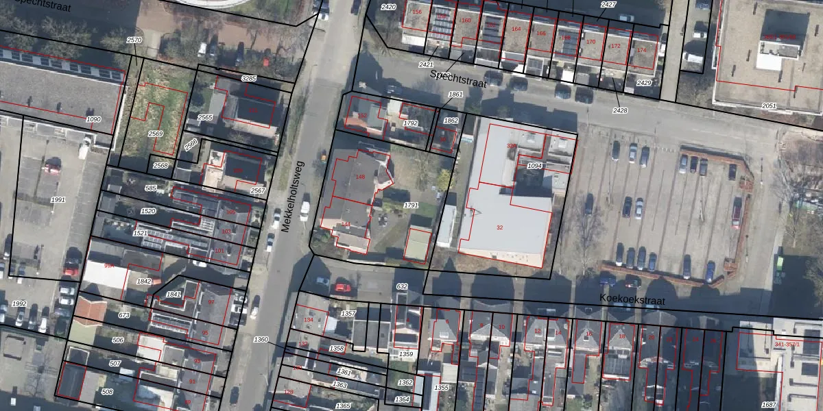 Gebruik de zoekbalk of klik op een perceel om informatie over het perceel te bekijken.