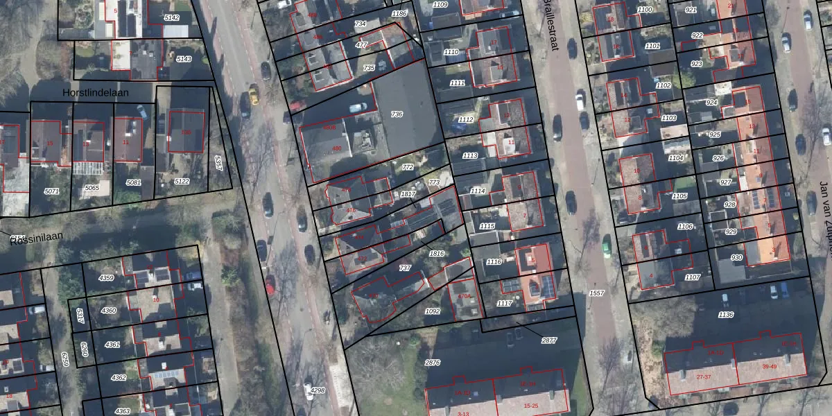 Gebruik de zoekbalk of klik op een perceel om informatie over het perceel te bekijken.