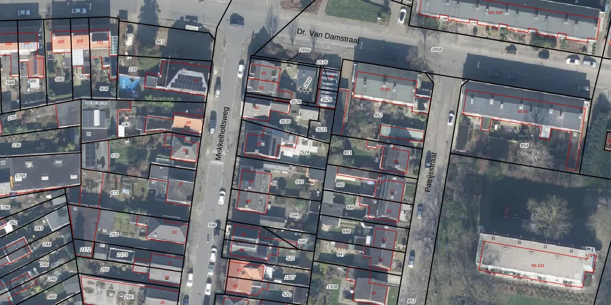Gebruik de zoekbalk of klik op een perceel om informatie over het perceel te bekijken.
