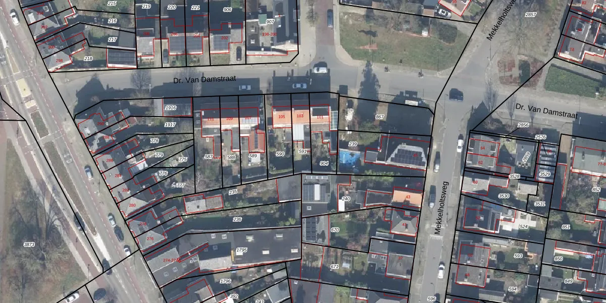 Gebruik de zoekbalk of klik op een perceel om informatie over het perceel te bekijken.