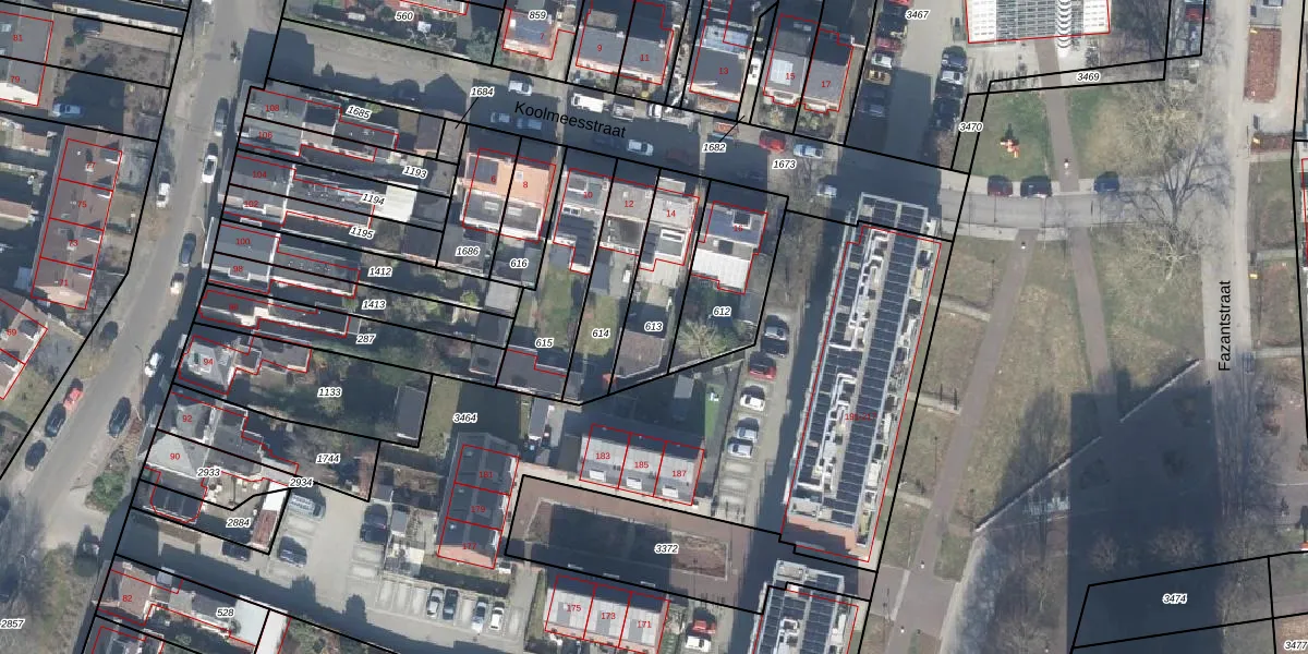 Gebruik de zoekbalk of klik op een perceel om informatie over het perceel te bekijken.