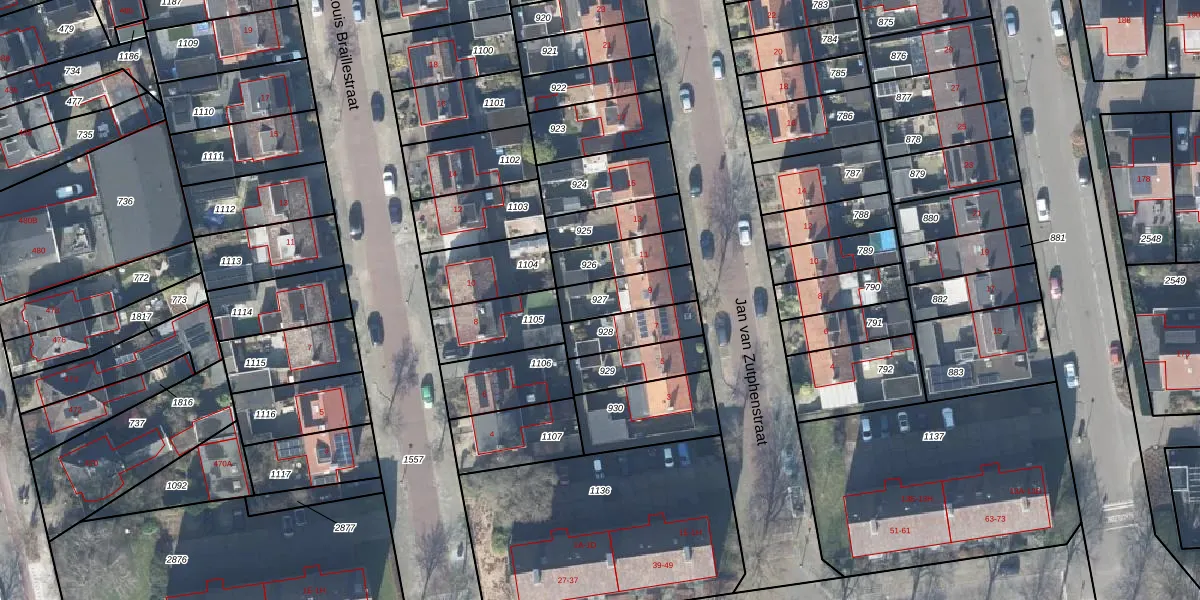Gebruik de zoekbalk of klik op een perceel om informatie over het perceel te bekijken.