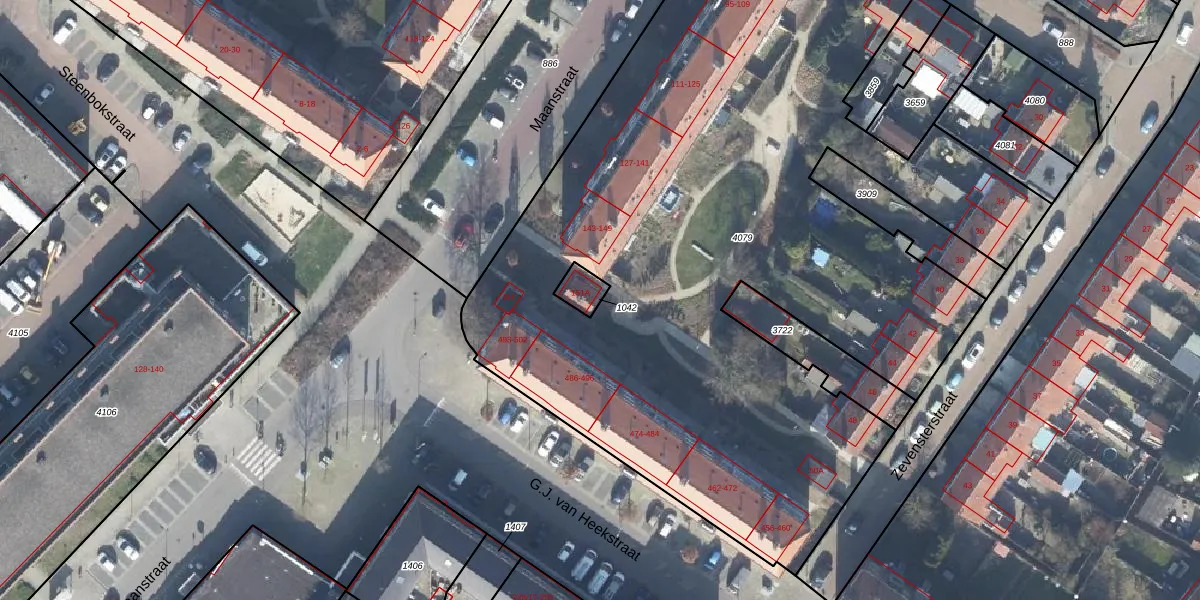 Gebruik de zoekbalk of klik op een perceel om informatie over het perceel te bekijken.