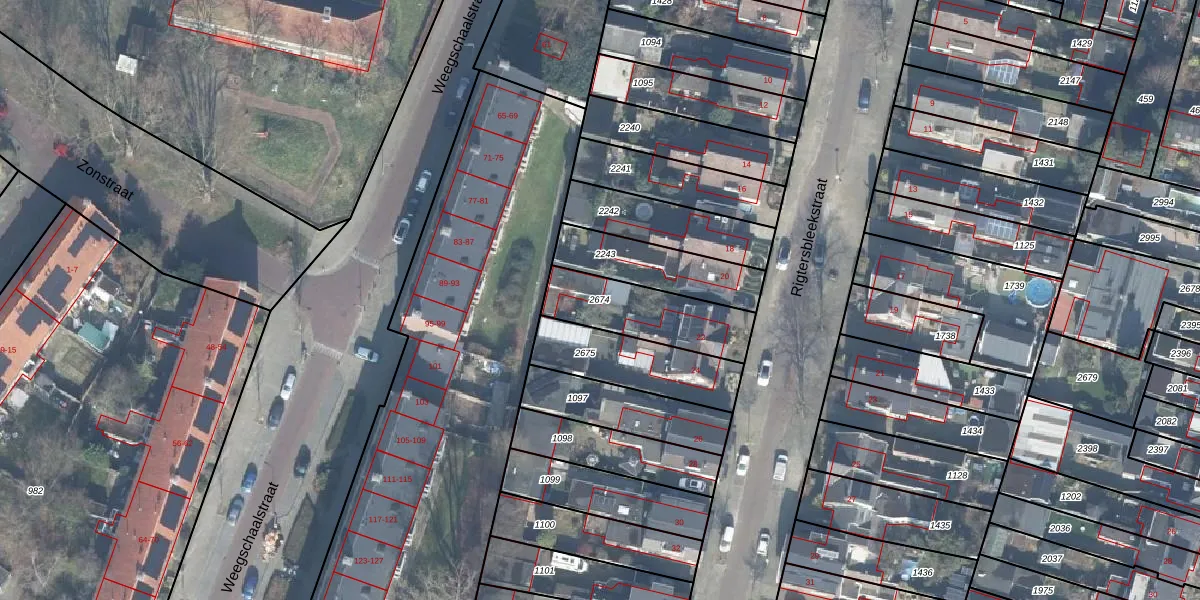 Gebruik de zoekbalk of klik op een perceel om informatie over het perceel te bekijken.
