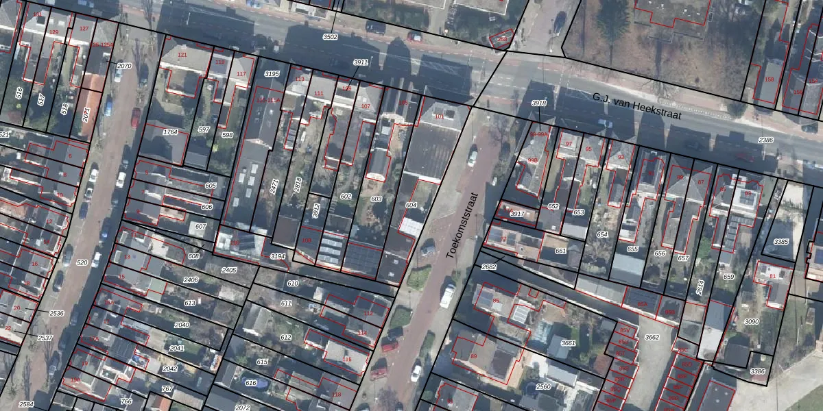 Gebruik de zoekbalk of klik op een perceel om informatie over het perceel te bekijken.