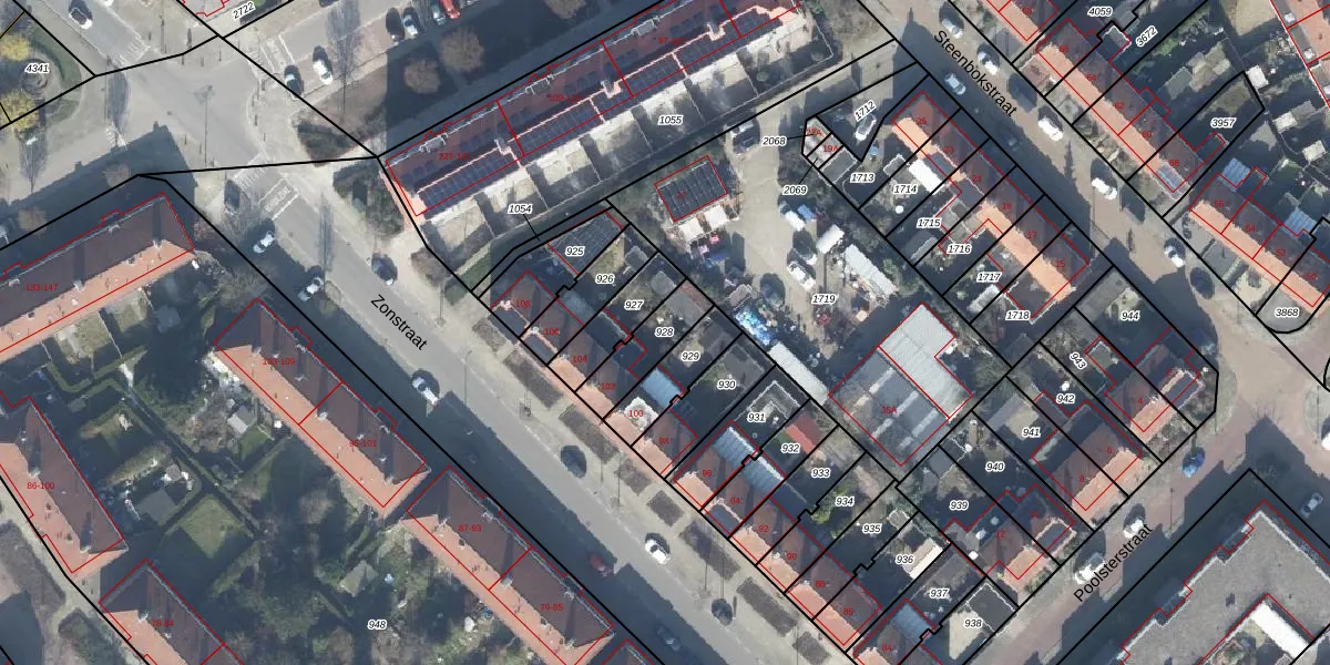 Gebruik de zoekbalk of klik op een perceel om informatie over het perceel te bekijken.