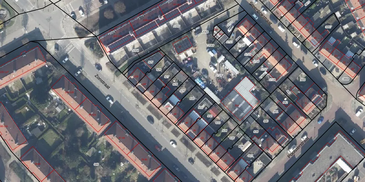 Gebruik de zoekbalk of klik op een perceel om informatie over het perceel te bekijken.