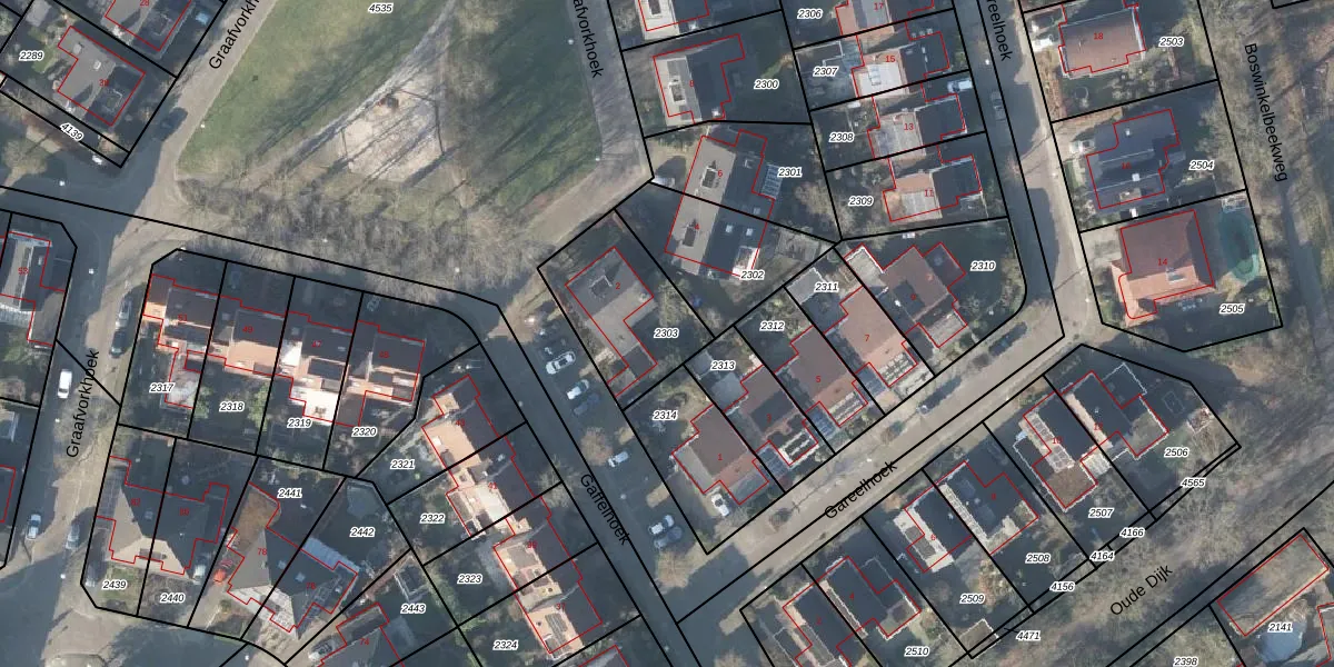 Gebruik de zoekbalk of klik op een perceel om informatie over het perceel te bekijken.