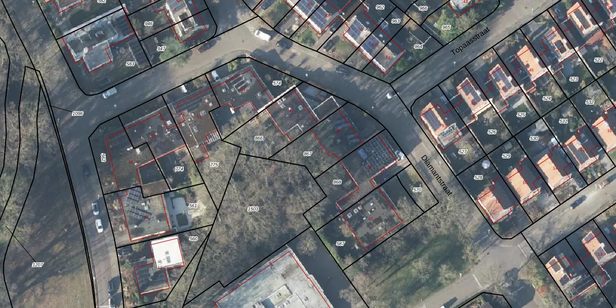 Gebruik de zoekbalk of klik op een perceel om informatie over het perceel te bekijken.