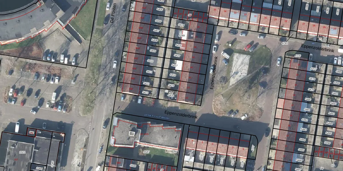 Gebruik de zoekbalk of klik op een perceel om informatie over het perceel te bekijken.