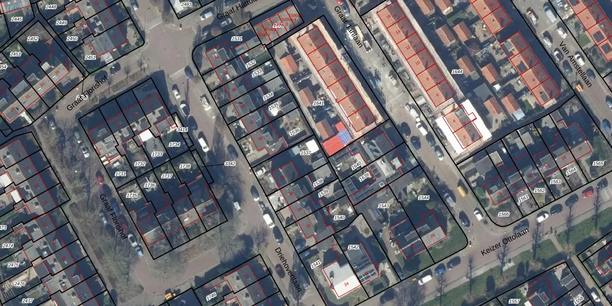 Gebruik de zoekbalk of klik op een perceel om informatie over het perceel te bekijken.