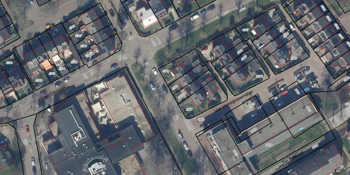 Gebruik de zoekbalk of klik op een perceel om informatie over het perceel te bekijken.
