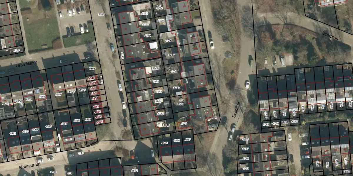 Gebruik de zoekbalk of klik op een perceel om informatie over het perceel te bekijken.