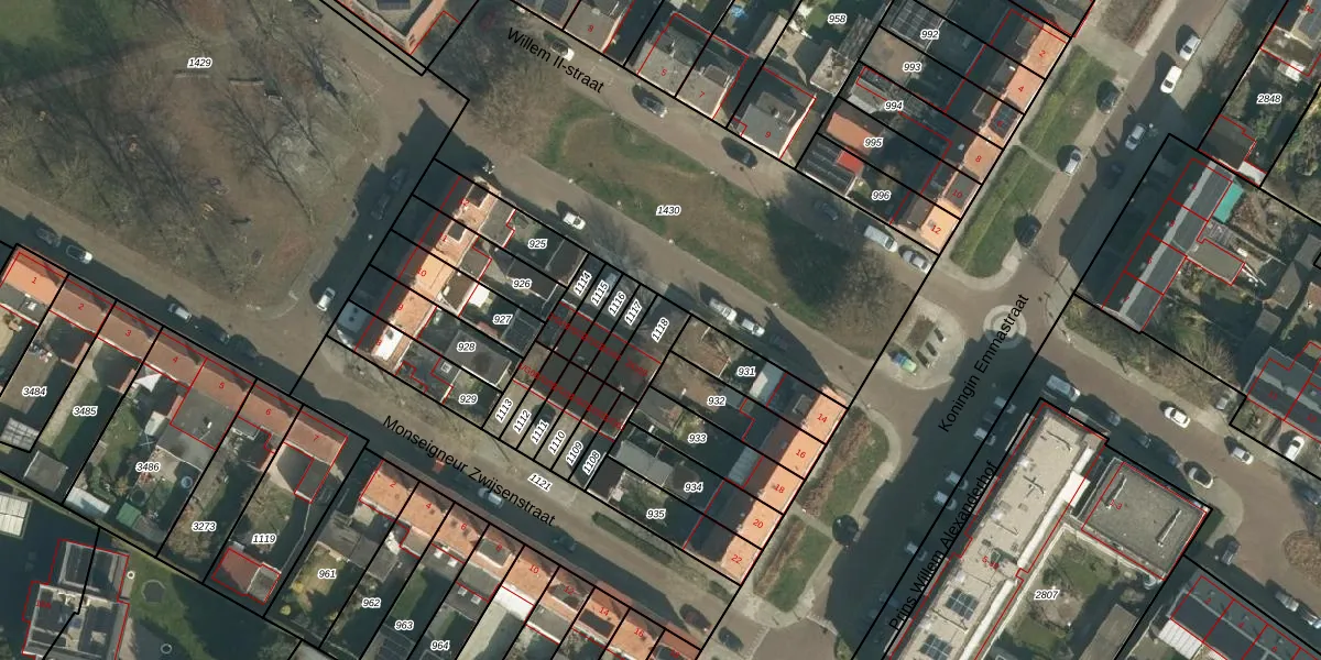 Gebruik de zoekbalk of klik op een perceel om informatie over het perceel te bekijken.