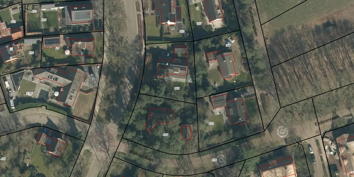Gebruik de zoekbalk of klik op een perceel om informatie over het perceel te bekijken.