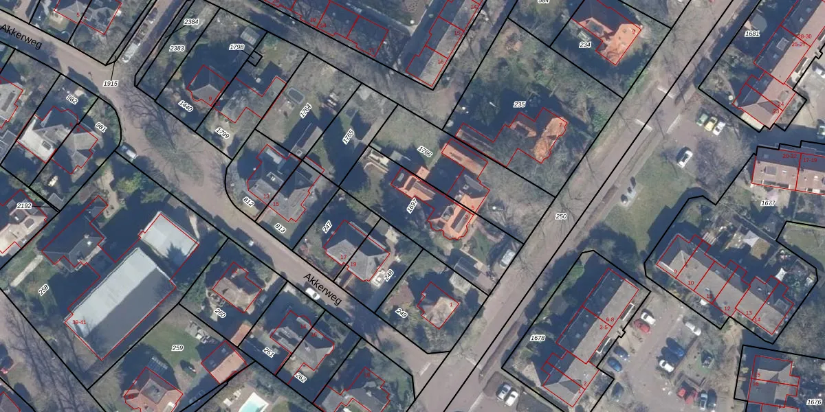 Gebruik de zoekbalk of klik op een perceel om informatie over het perceel te bekijken.