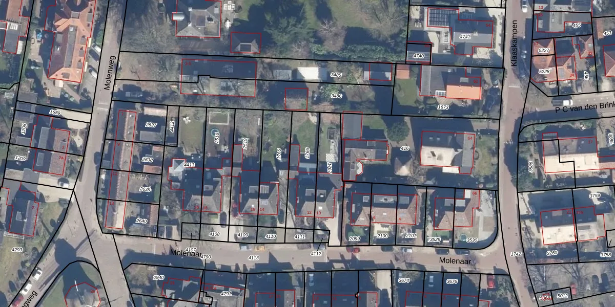 Gebruik de zoekbalk of klik op een perceel om informatie over het perceel te bekijken.