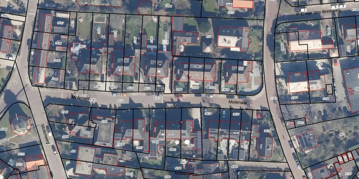 Gebruik de zoekbalk of klik op een perceel om informatie over het perceel te bekijken.