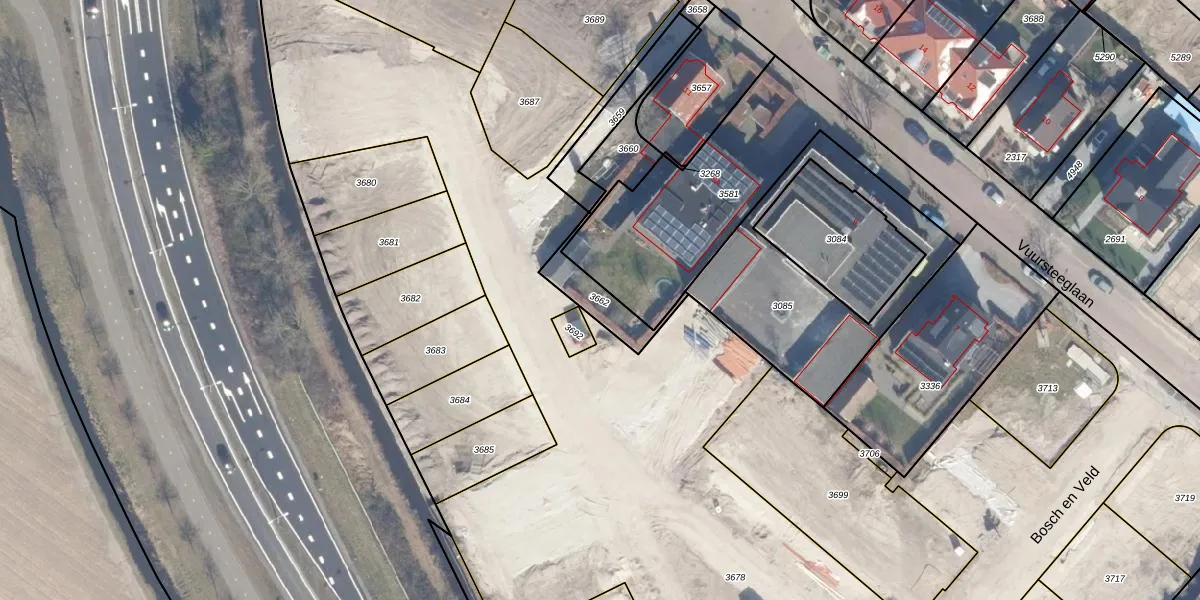 Gebruik de zoekbalk of klik op een perceel om informatie over het perceel te bekijken.