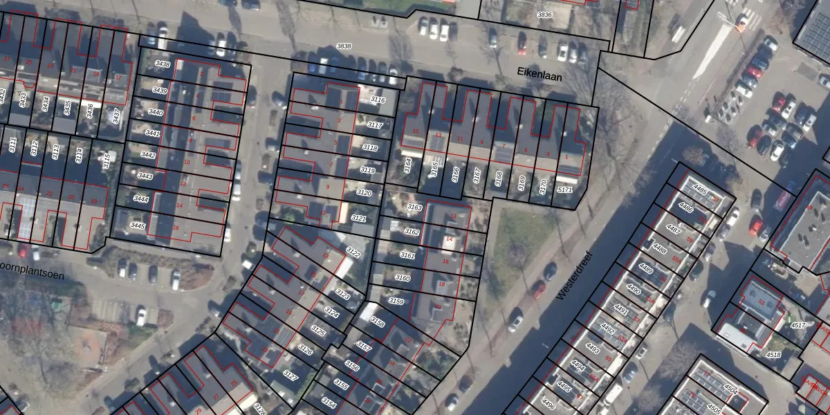 Gebruik de zoekbalk of klik op een perceel om informatie over het perceel te bekijken.