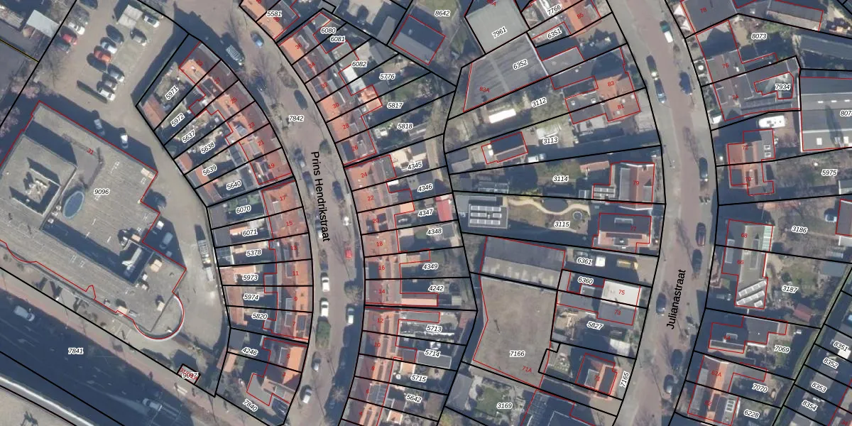 Gebruik de zoekbalk of klik op een perceel om informatie over het perceel te bekijken.