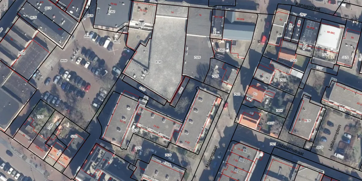 Gebruik de zoekbalk of klik op een perceel om informatie over het perceel te bekijken.
