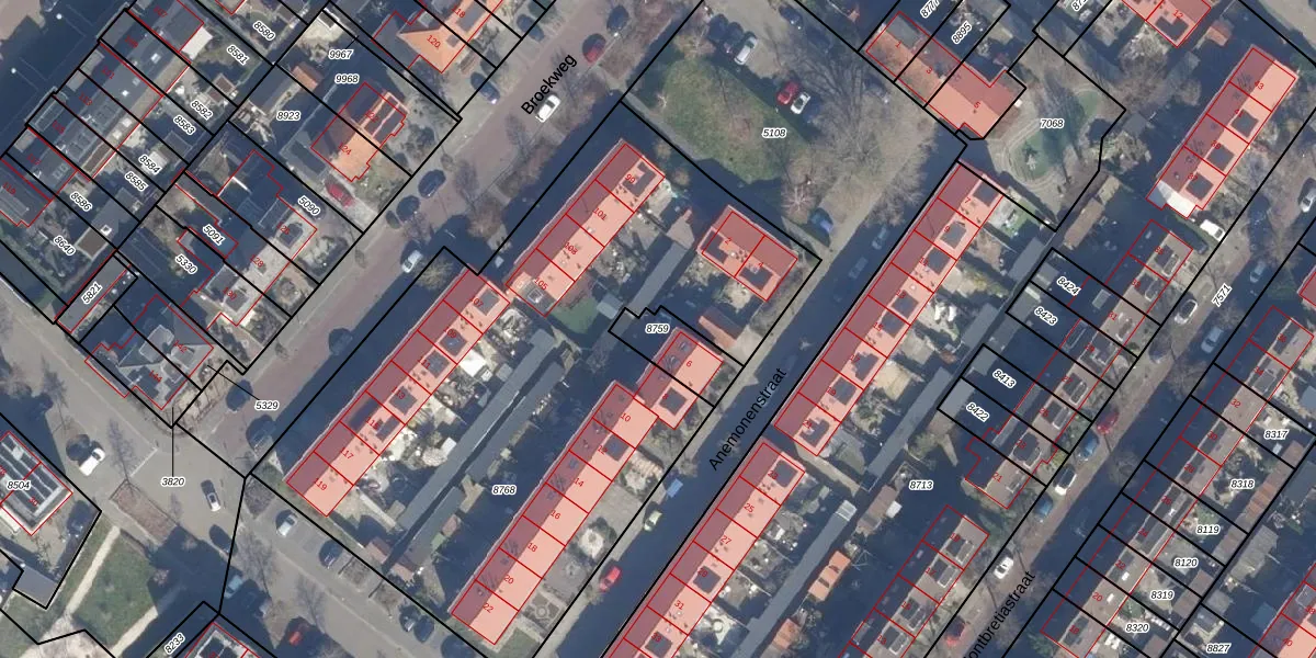 Gebruik de zoekbalk of klik op een perceel om informatie over het perceel te bekijken.
