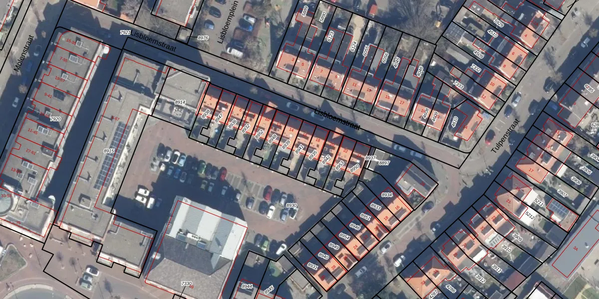 Gebruik de zoekbalk of klik op een perceel om informatie over het perceel te bekijken.