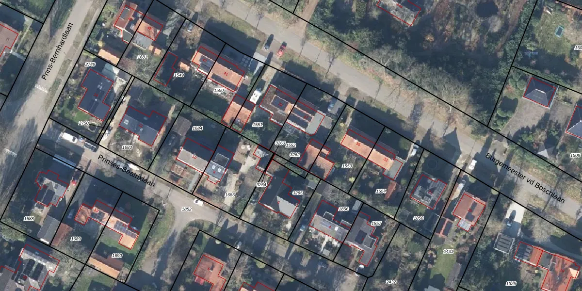 Gebruik de zoekbalk of klik op een perceel om informatie over het perceel te bekijken.