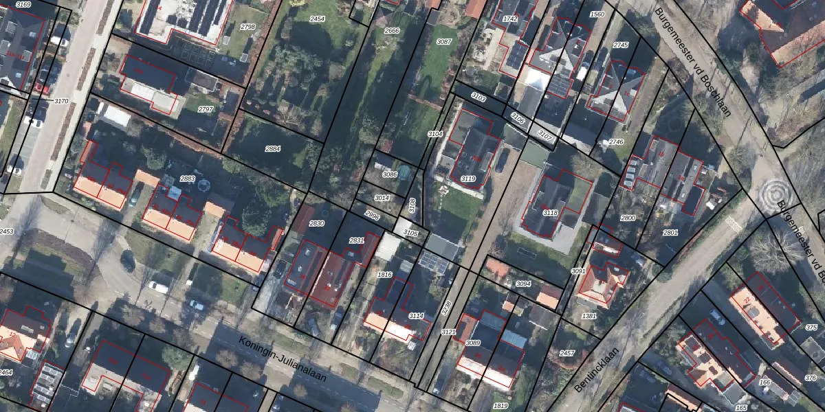 Gebruik de zoekbalk of klik op een perceel om informatie over het perceel te bekijken.