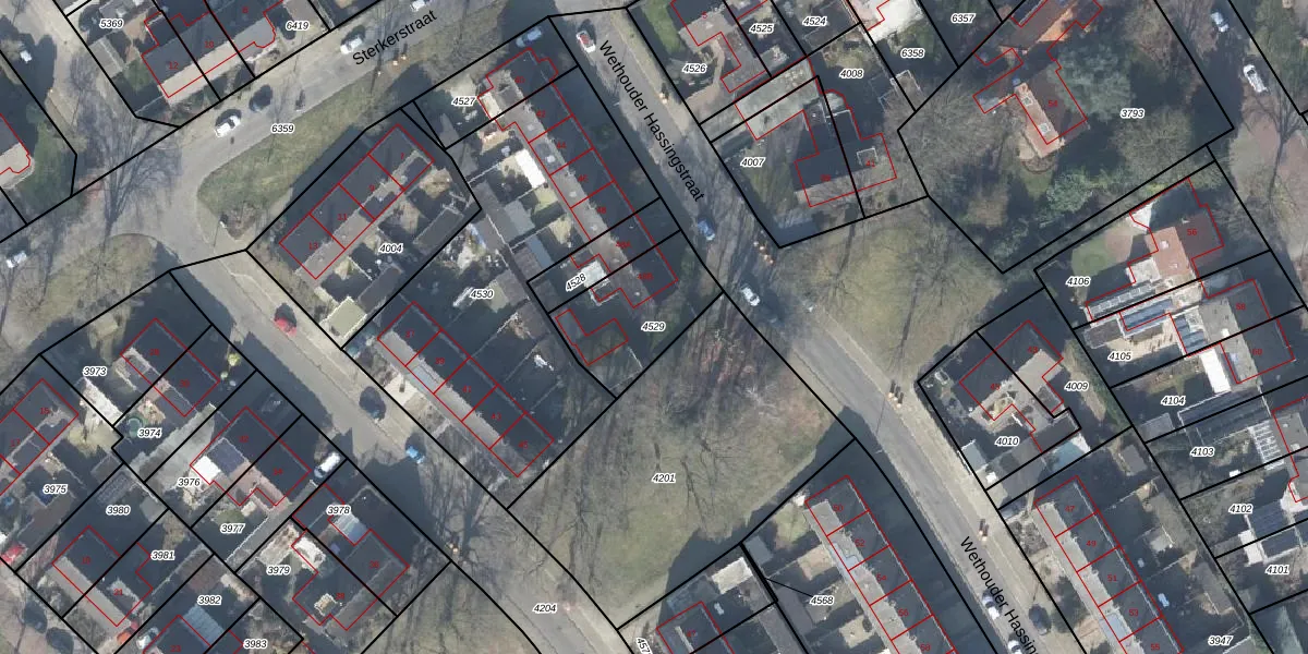 Gebruik de zoekbalk of klik op een perceel om informatie over het perceel te bekijken.