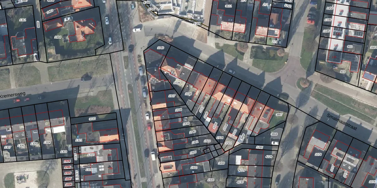 Gebruik de zoekbalk of klik op een perceel om informatie over het perceel te bekijken.