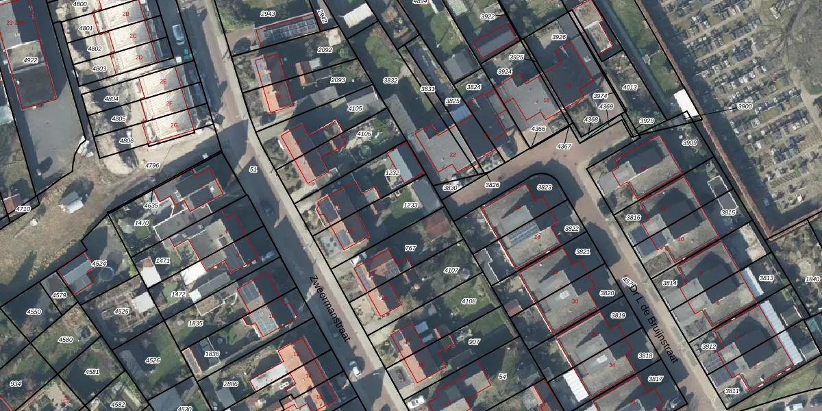 Gebruik de zoekbalk of klik op een perceel om informatie over het perceel te bekijken.