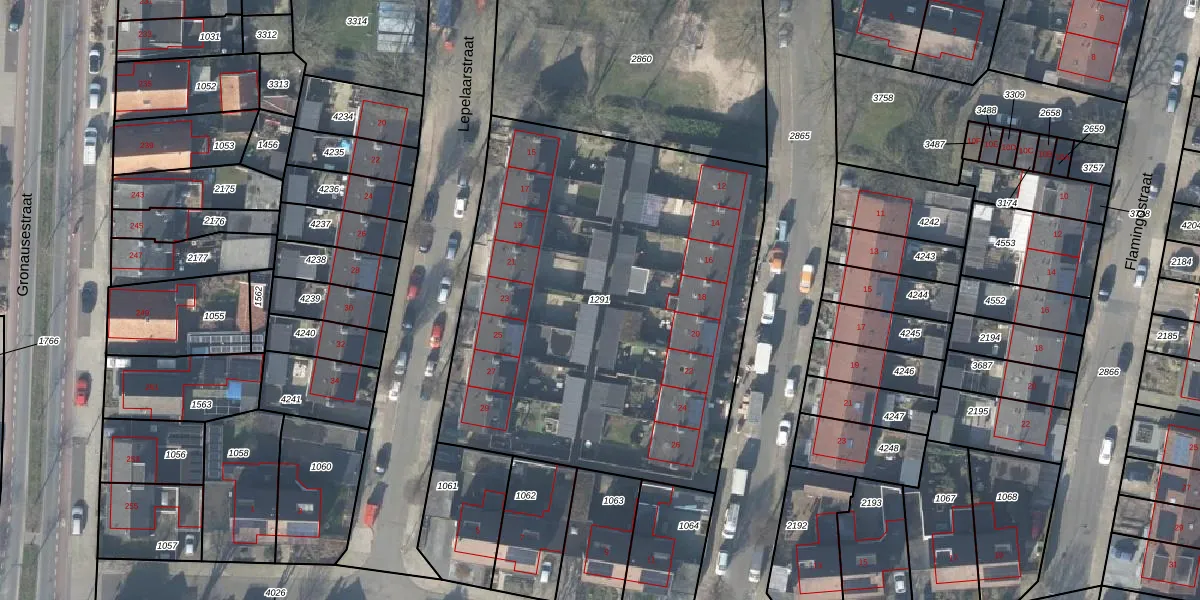 Gebruik de zoekbalk of klik op een perceel om informatie over het perceel te bekijken.
