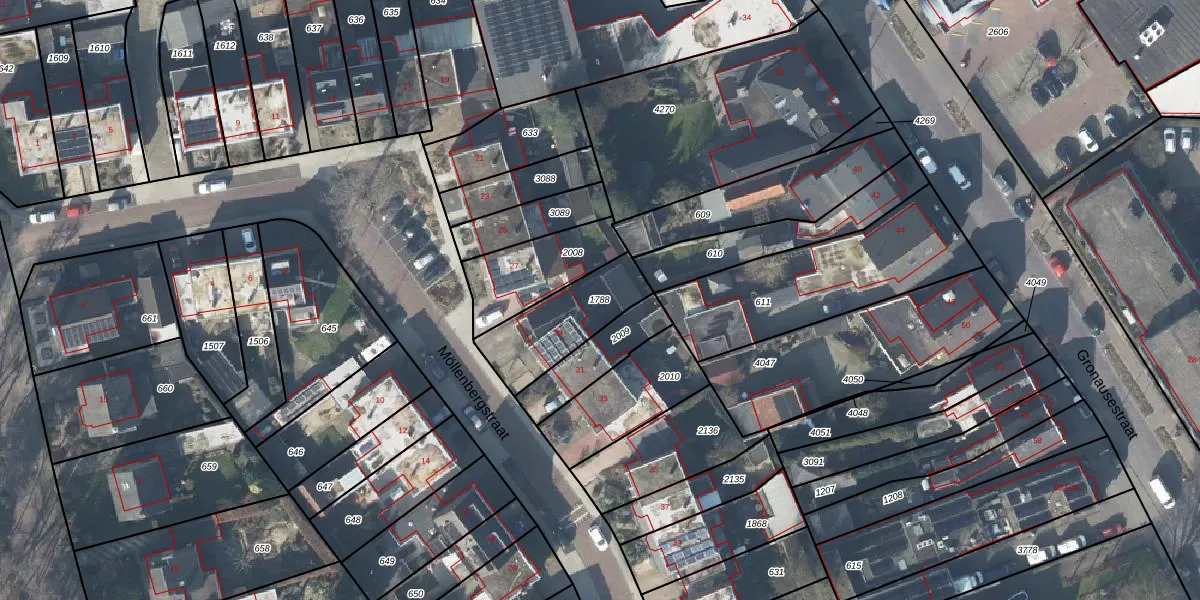 Gebruik de zoekbalk of klik op een perceel om informatie over het perceel te bekijken.
