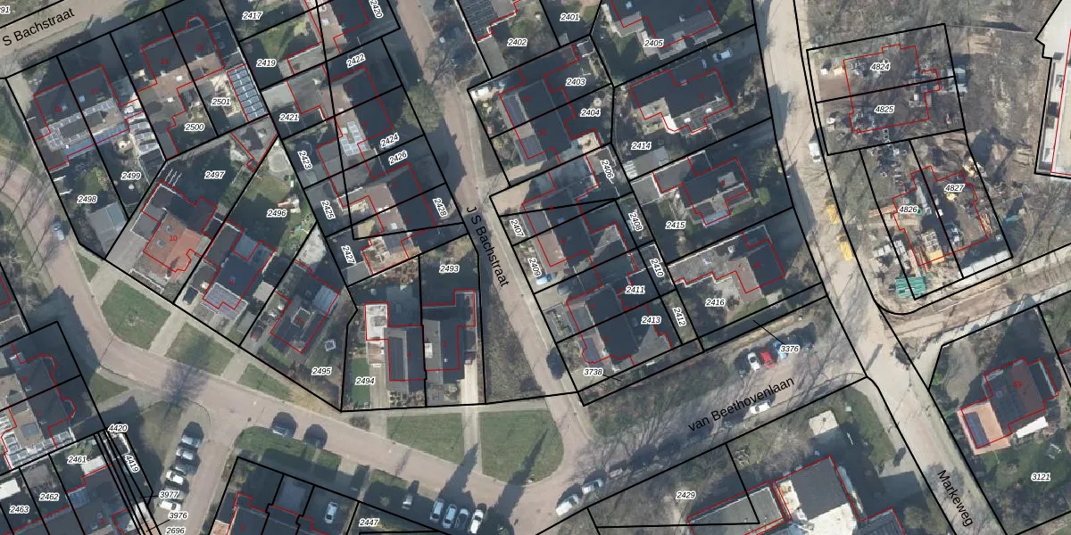 Gebruik de zoekbalk of klik op een perceel om informatie over het perceel te bekijken.