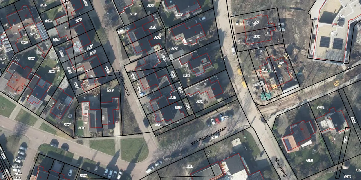 Gebruik de zoekbalk of klik op een perceel om informatie over het perceel te bekijken.
