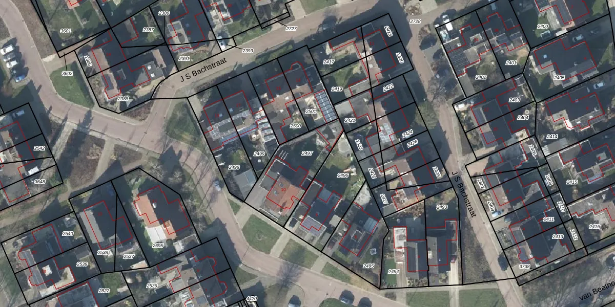 Gebruik de zoekbalk of klik op een perceel om informatie over het perceel te bekijken.