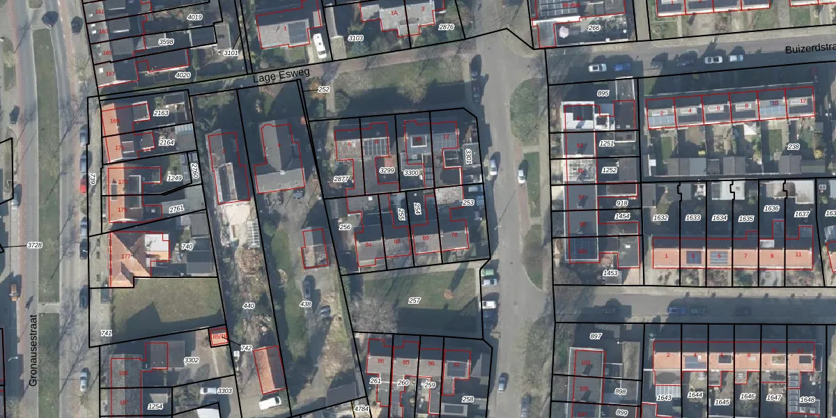 Gebruik de zoekbalk of klik op een perceel om informatie over het perceel te bekijken.