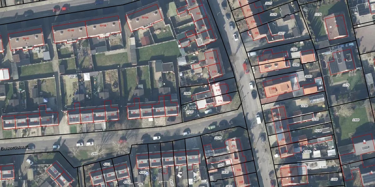 Gebruik de zoekbalk of klik op een perceel om informatie over het perceel te bekijken.