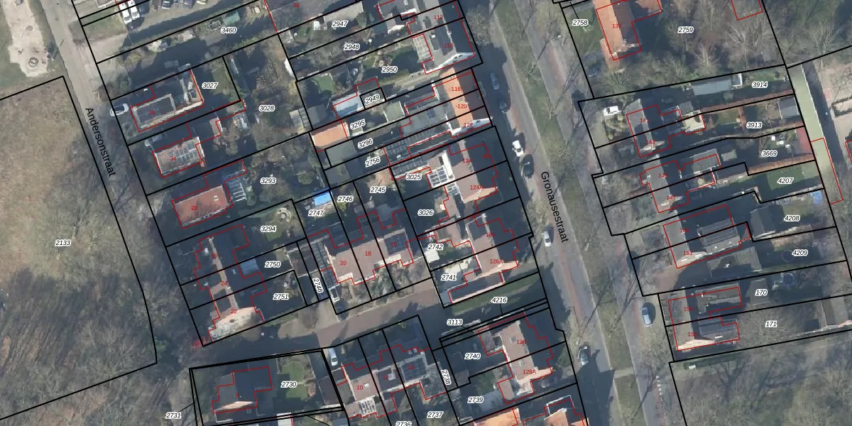 Gebruik de zoekbalk of klik op een perceel om informatie over het perceel te bekijken.