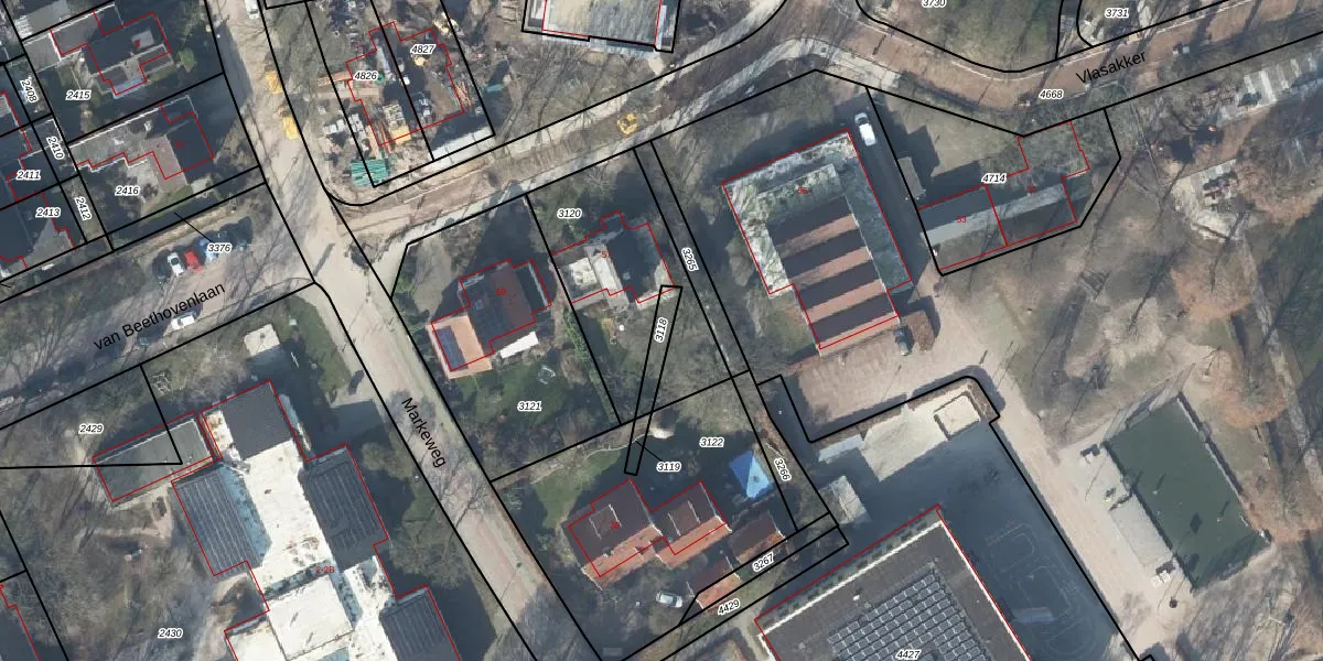 Gebruik de zoekbalk of klik op een perceel om informatie over het perceel te bekijken.