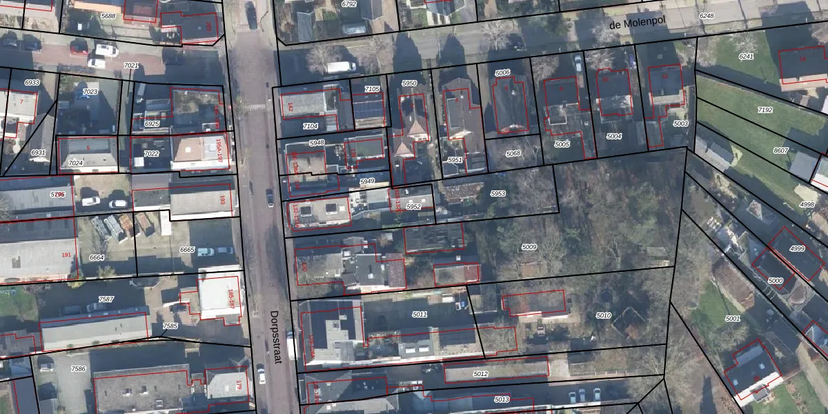Gebruik de zoekbalk of klik op een perceel om informatie over het perceel te bekijken.