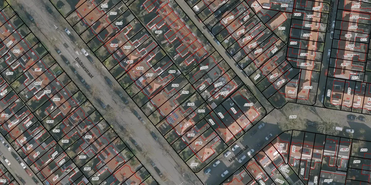 Gebruik de zoekbalk of klik op een perceel om informatie over het perceel te bekijken.