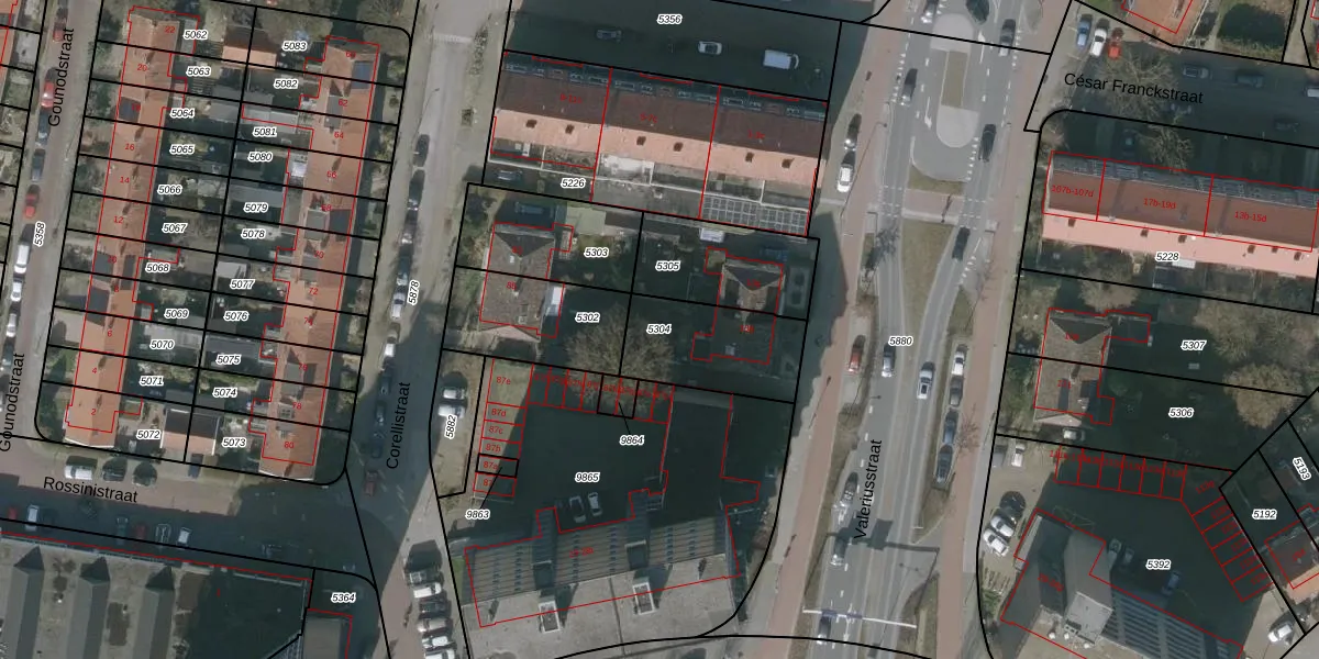 Gebruik de zoekbalk of klik op een perceel om informatie over het perceel te bekijken.