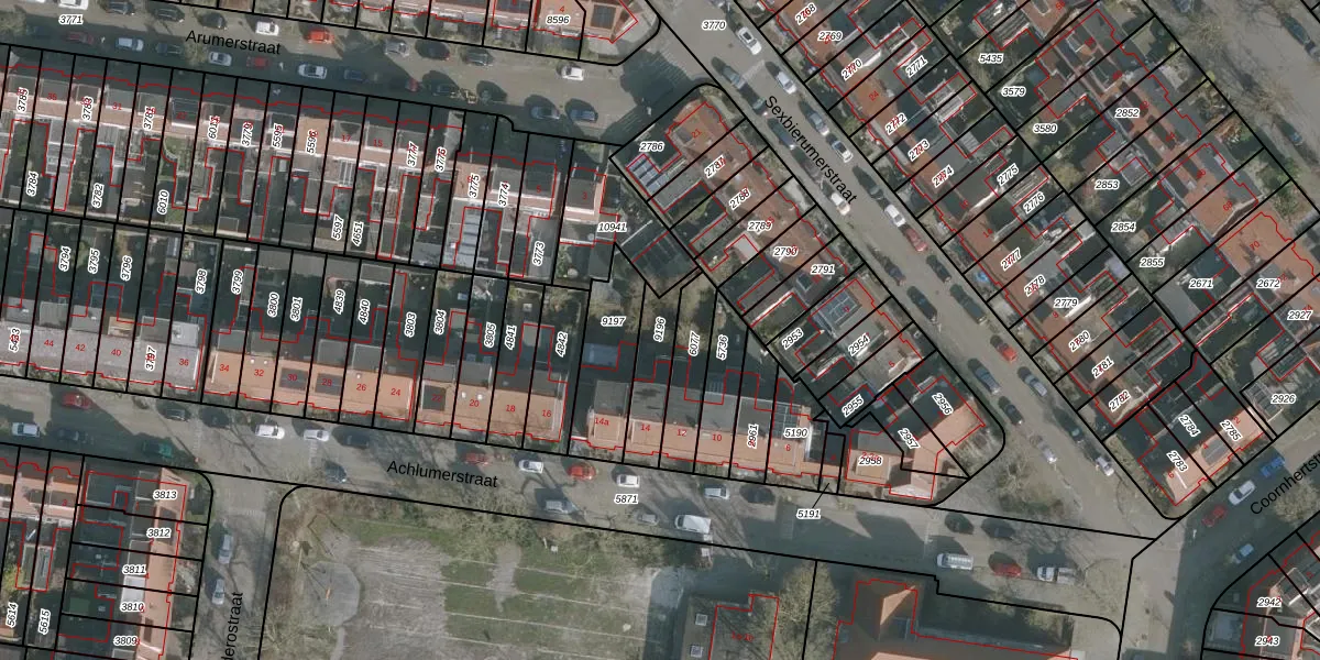 Gebruik de zoekbalk of klik op een perceel om informatie over het perceel te bekijken.