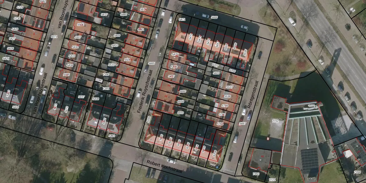 Gebruik de zoekbalk of klik op een perceel om informatie over het perceel te bekijken.