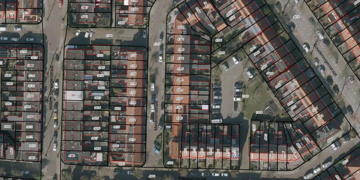 Gebruik de zoekbalk of klik op een perceel om informatie over het perceel te bekijken.